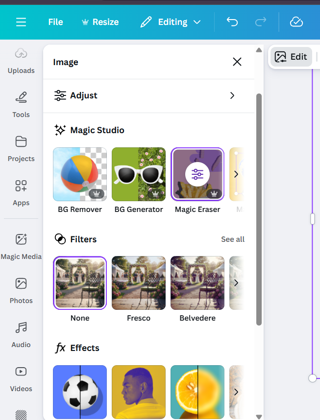 This section will help you to know how to use canva pro features like magic eraser,Magic Expand,Blur option and more .