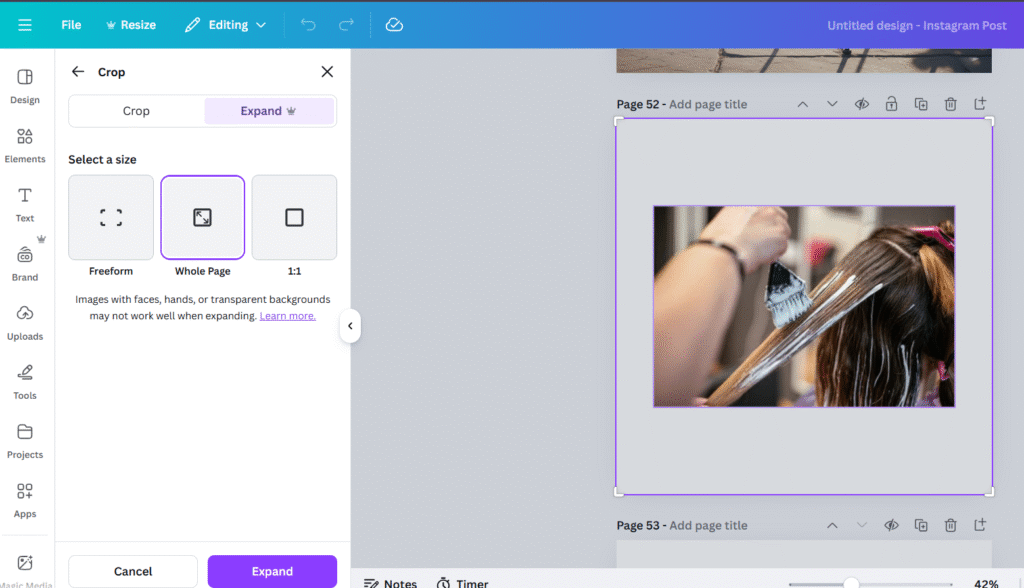 Magic Expand helps you turn a small image into a full-page image. It can also convert a square image into a rectangle or vice-versa — extremely useful when creating visuals for ads or social media.